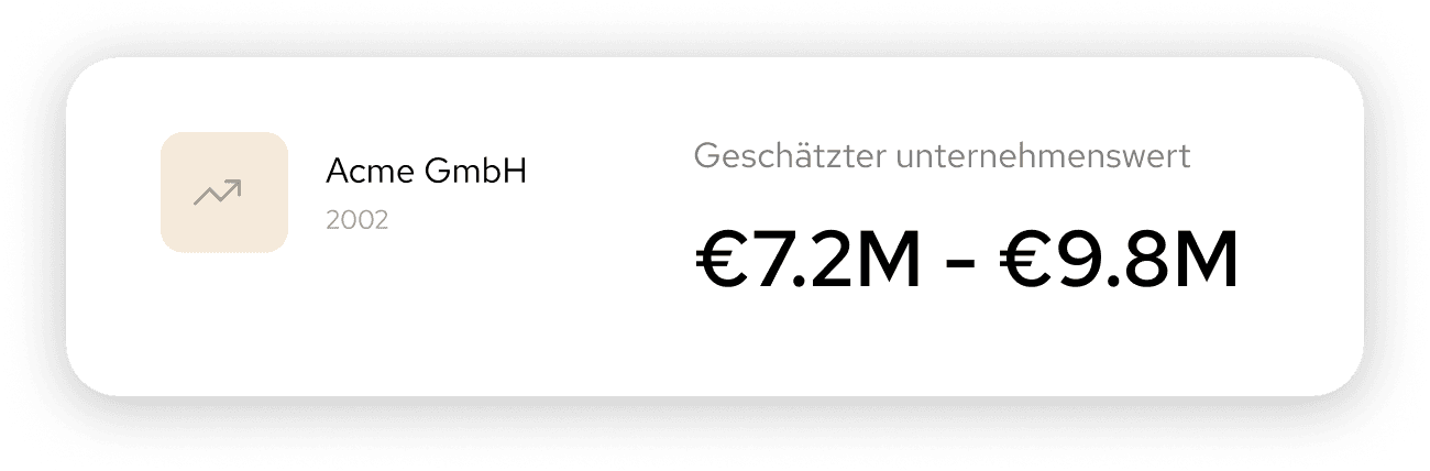 Sie erhalten in Sekunden eine indikative Bewertungsspanne mit kurzer Erklärung der wichtigsten Werttreiber – plus Optionen für die nächsten Schritte, z. B. Gespräch mit der CEO.